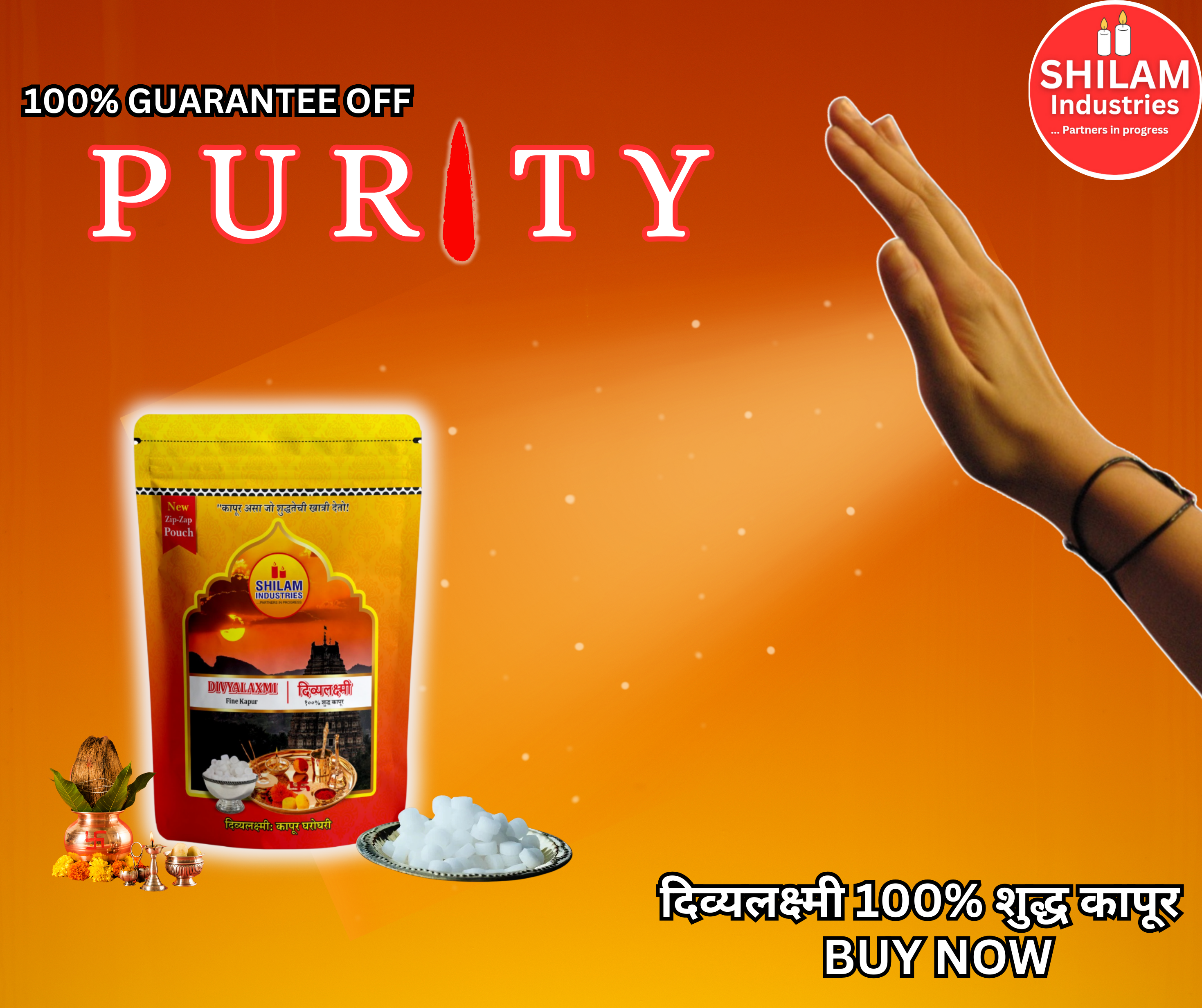 “Bring divine fragrance and positivity to your space with Divyalaxmi Shudh Kapur Tablets (50g). Crafted from premium-quality camphor, these tablets are free from harmful chemicals, ensuring a clean and pure burn during your rituals. The resealable zipper pouch preserves the camphor’s freshness and aroma for longer use. Perfect for daily poojas, havans, and spiritual ceremonies, they offer a calming and sacred ambiance.